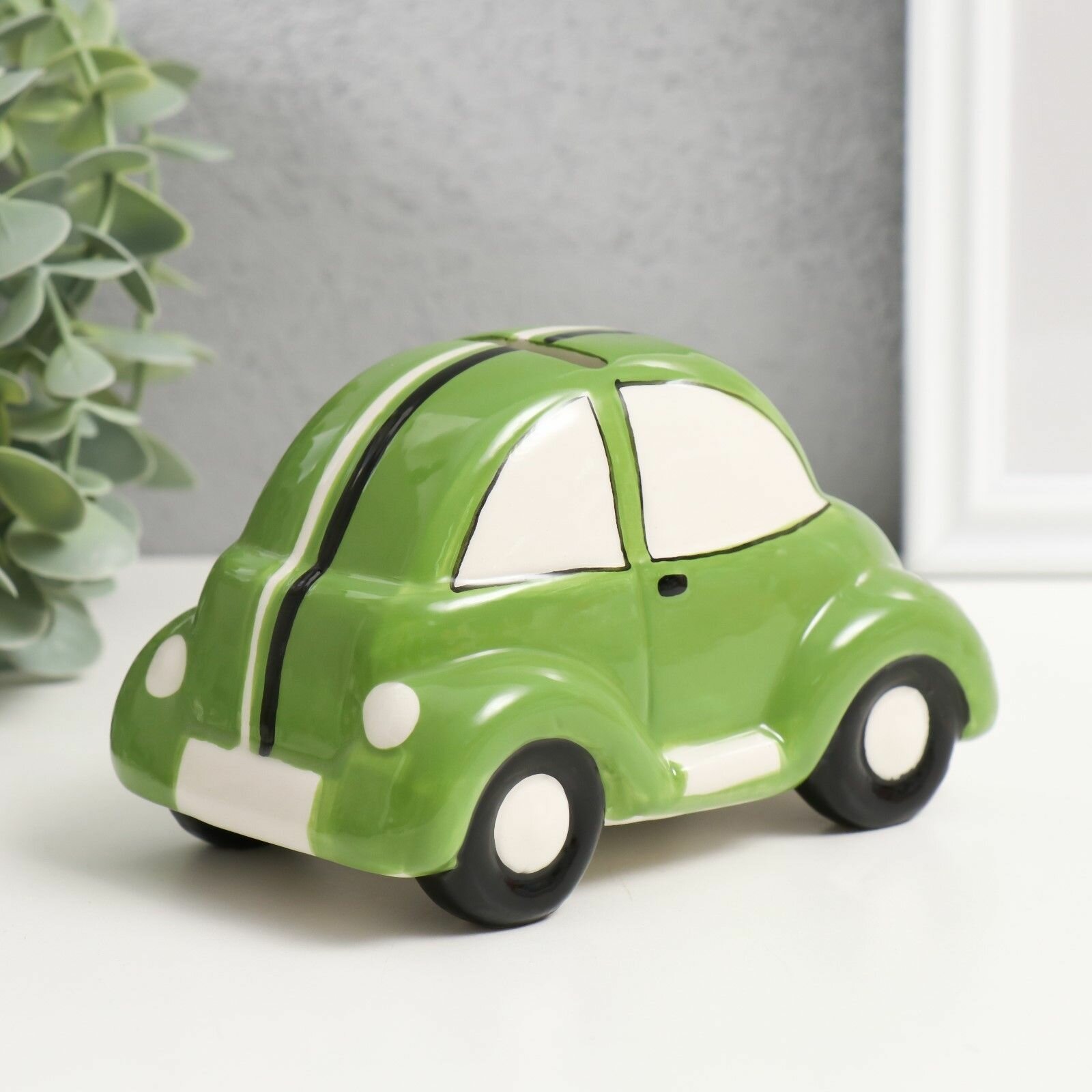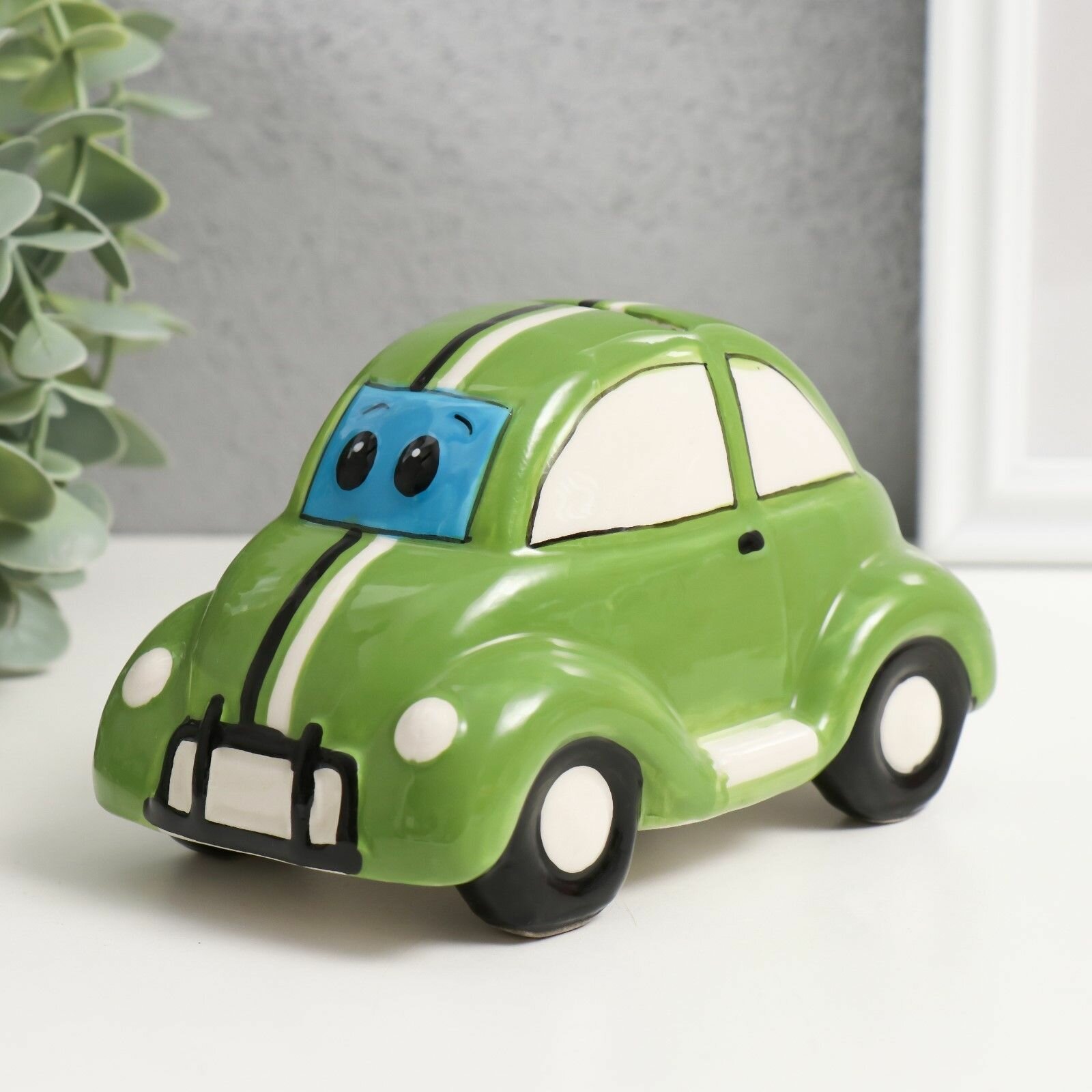 Копилка керамика "Машинка с глазками" зелёная 13х7,8х7,4 см информация: