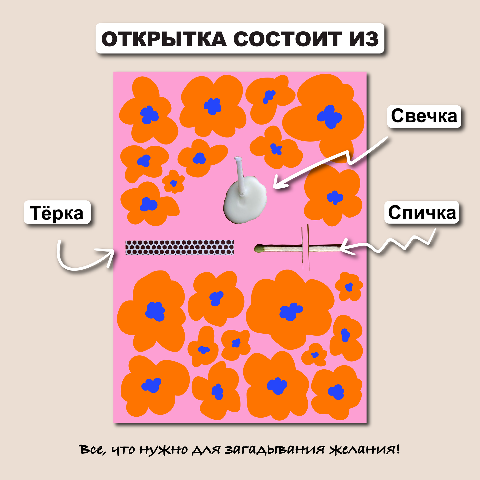 Открытка свечка "Загадай", от Вьюнчик, с крафтовым конвертом, 14,8х10,5 см (А6), открытка для загадывания желаний 390 ₽