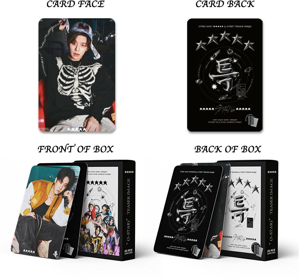 Карточки Stray kids кпоп карты "Black", 55 шт., разноцветные, размер 8.5х5.5