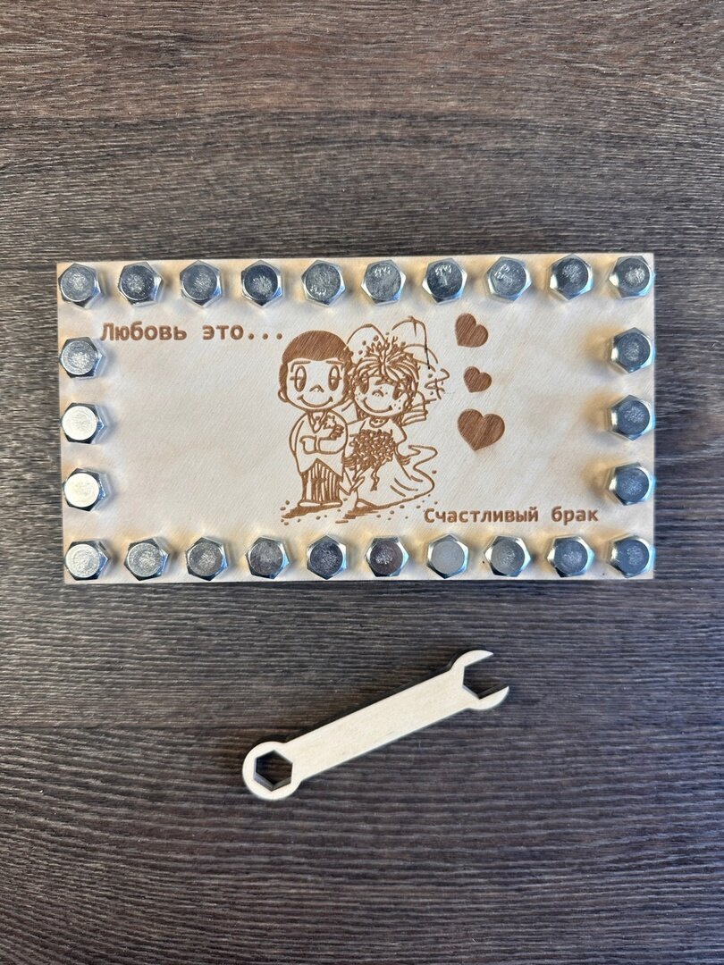 Конверт для денег деревянный подарочный с болтами "Любовь - это счастливый брак" 884 ₽
