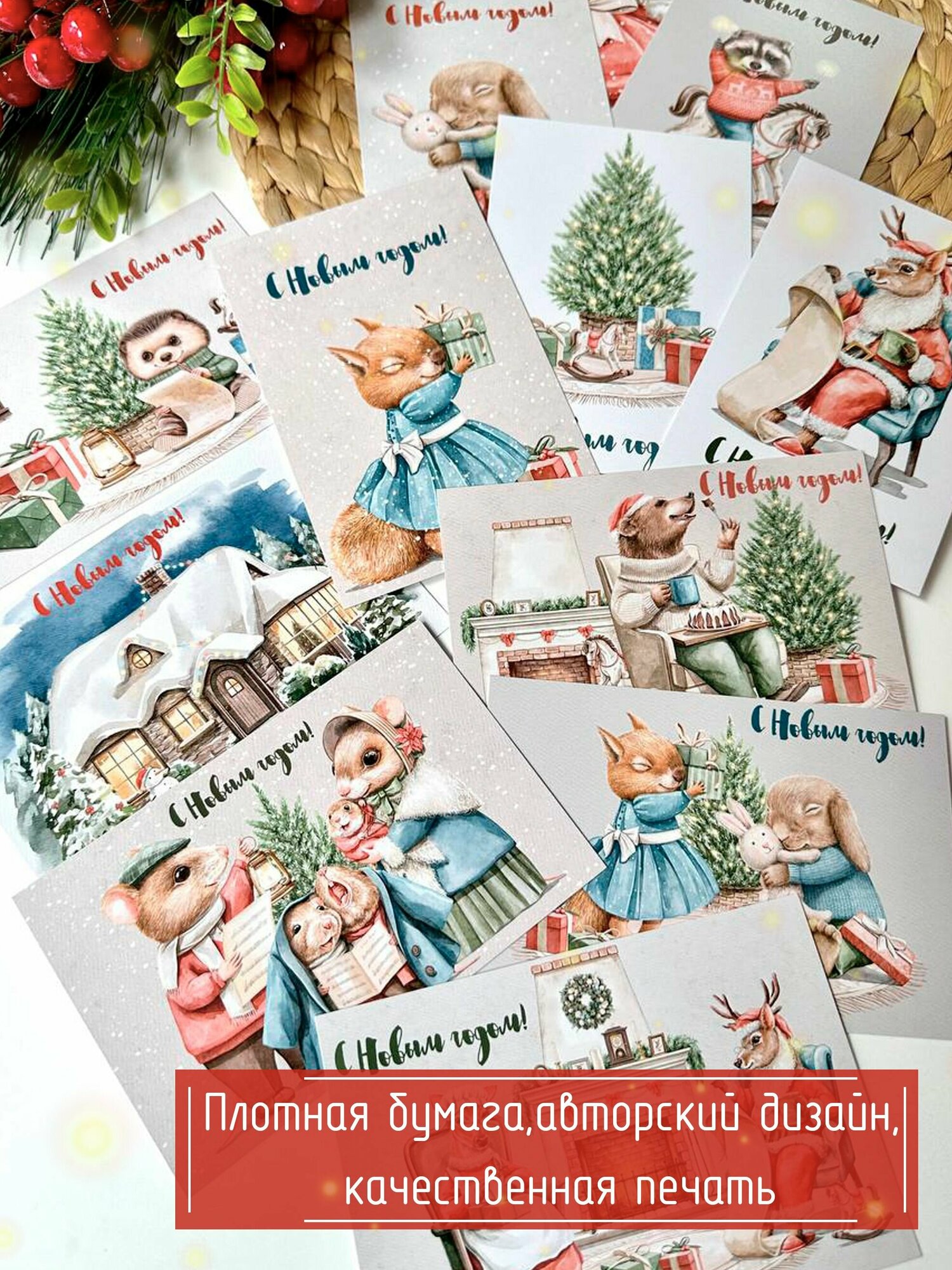 Miaworkstudio Набор праздничных новогодних открыток "Винтажный новый год", подарок-открытки на новый год, зимние, почтовые информация: