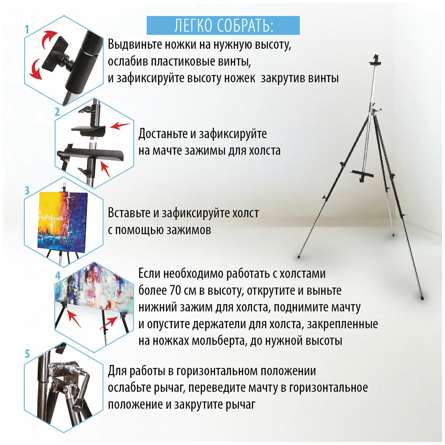 | Вид мольберта | тренога |