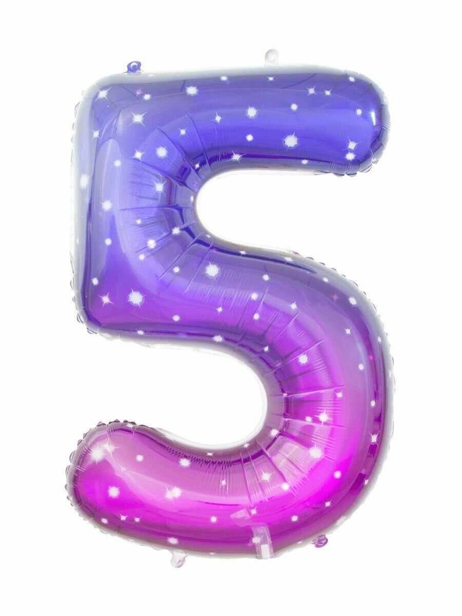 Фольгированный воздушный шар Космос, цифра 5, градиент розово- фиолетовый, высота 86см / МосШар информация: