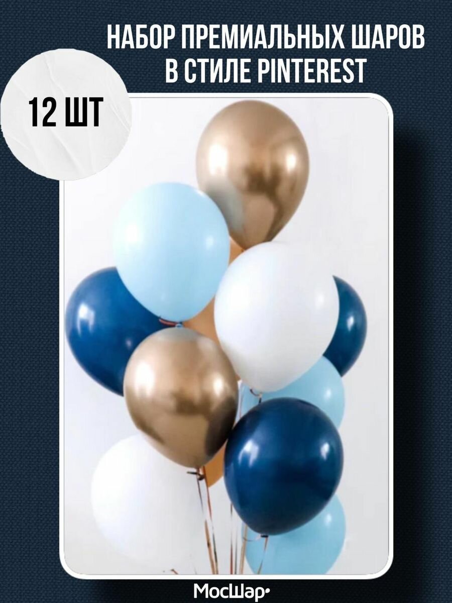 10 цен на Набор воздушных шаров МосШар, 12 штук, диаметр 30 сантиметров, синий цвет, без наполнения