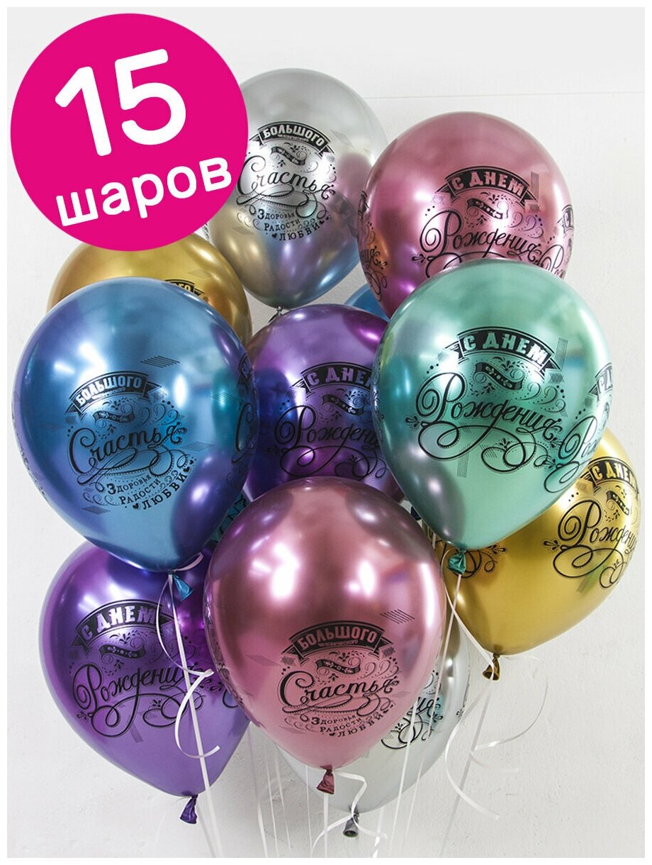 Воздушные шары латексные Riota хромовые, Винтаж, С Днем рождения, разноцветные, 30 см, 15 шт. информация: