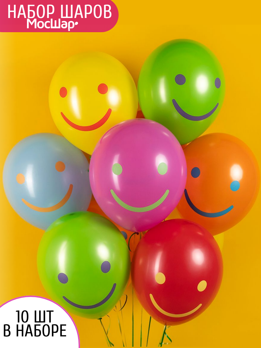 Набор воздушных латексных шаров на день рождения, смайлики, 10 шт информация: