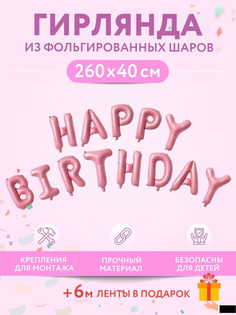 Отзывы на Набор фольгированных воздушных шаров буквы для фотозоны Happy Birthday С днем рождения, розовые