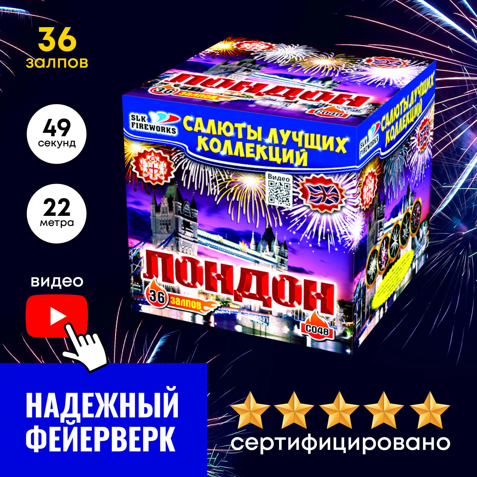 Салют фейерверк slk fireworks C048 Лондон 36 залпов 0.8 дюйм 4 200 ₽