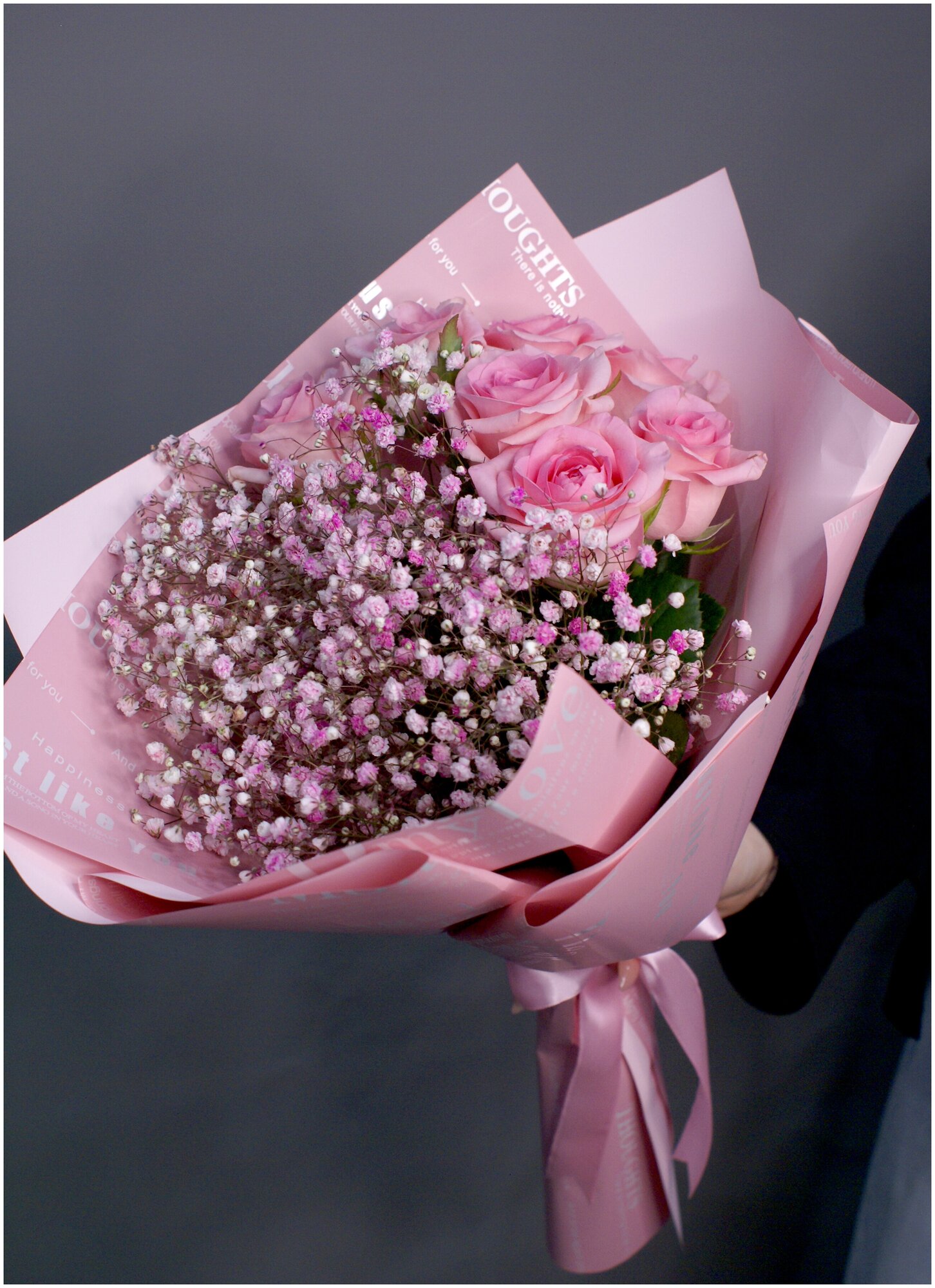 Отзывы на Букет из розовых роз и гипсофил, 7 роз и 3 ветки гипсофил "Мисс Нежность"