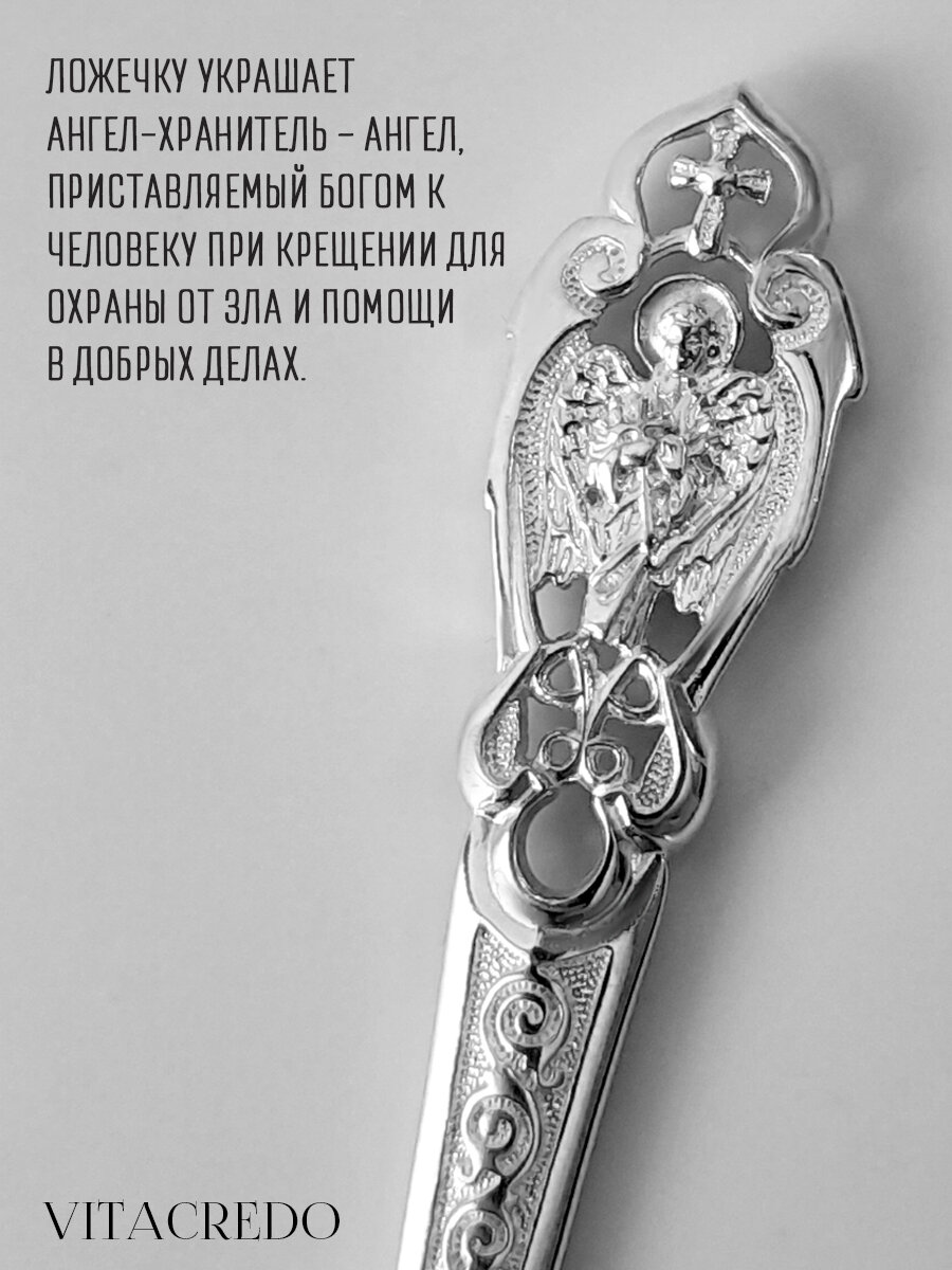 Серебряная ложка детская "Ангел" на крестины и первый зубик ювелирный сувенир в подарок мальчику и девочке для первого прикорма информация: