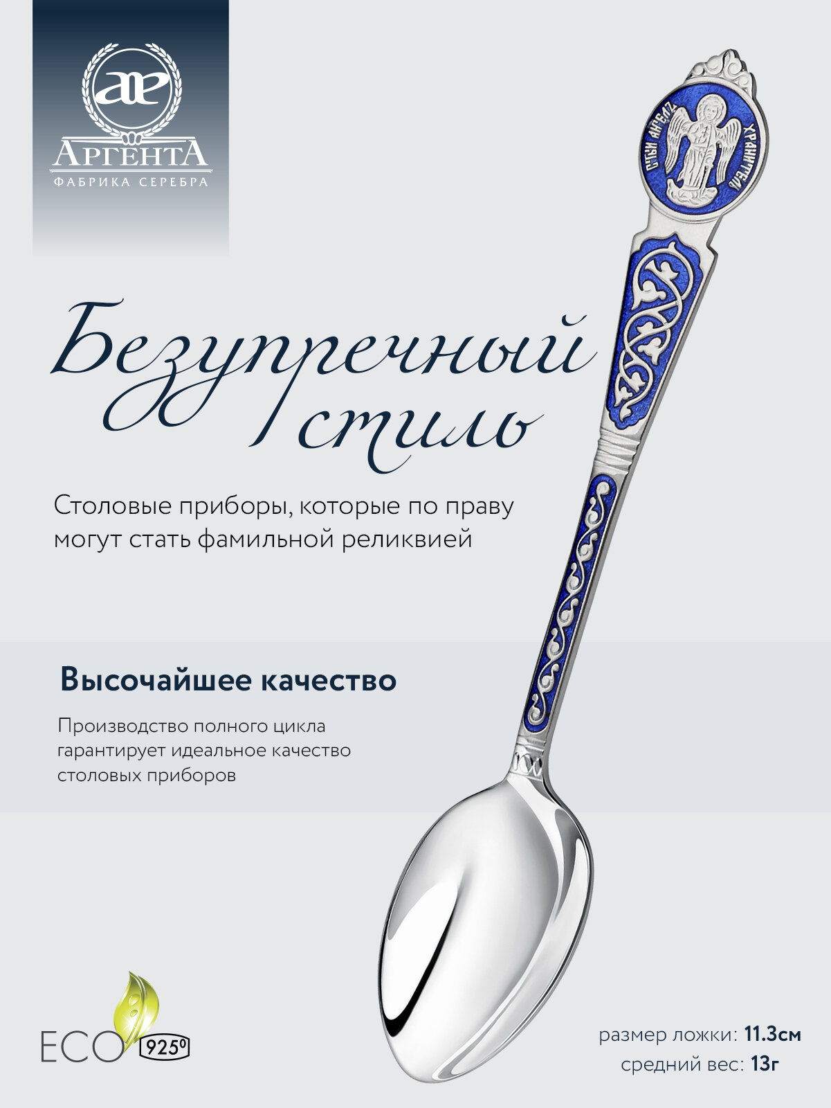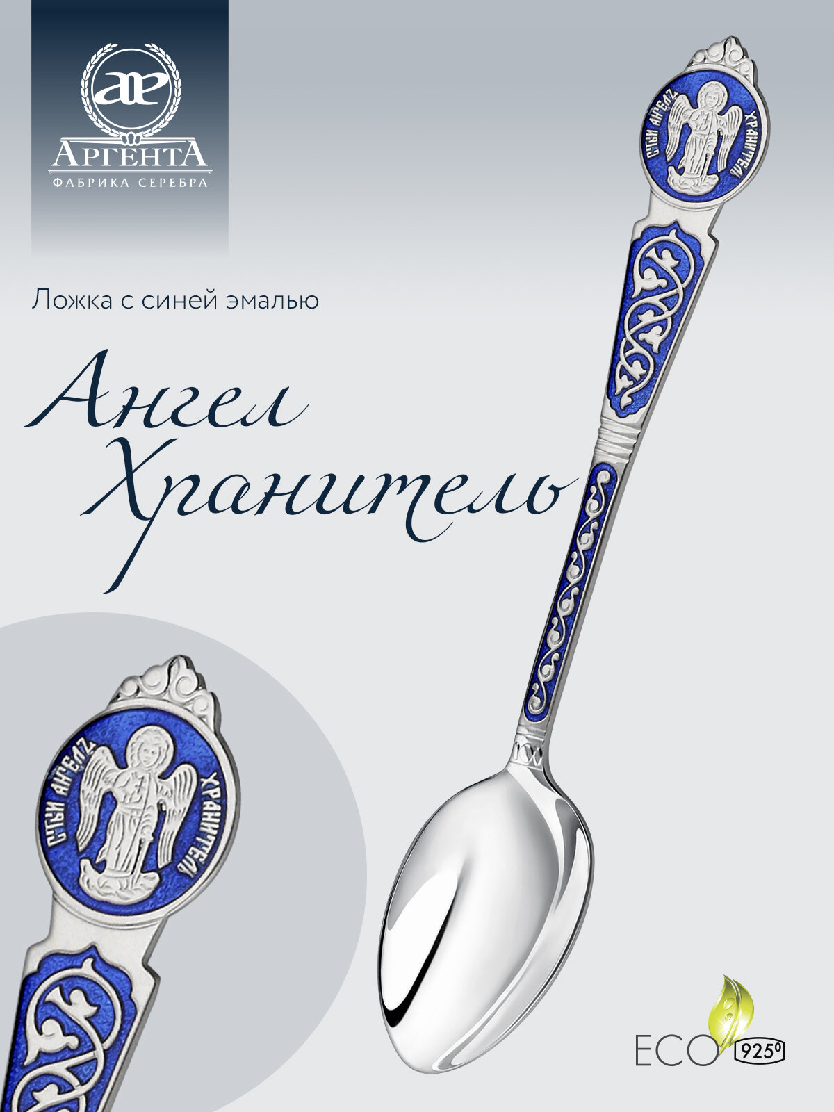 10 цен на Ложка серебряная "Ангел-Хранитель" с синей эмалью