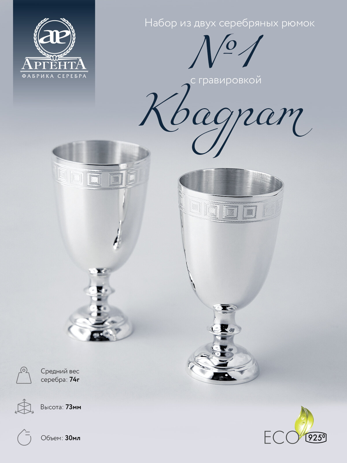 Набор серебряных рюмок №1 с рисунком "Квадрат" (2предмета) информация: