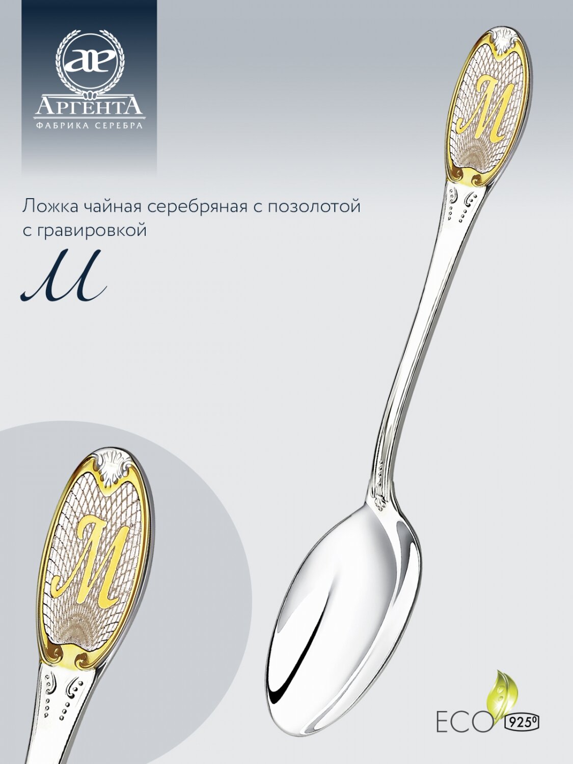 Серебряная чайная ложка с логотипом "Е" с позолотой от бренда "Аргента"