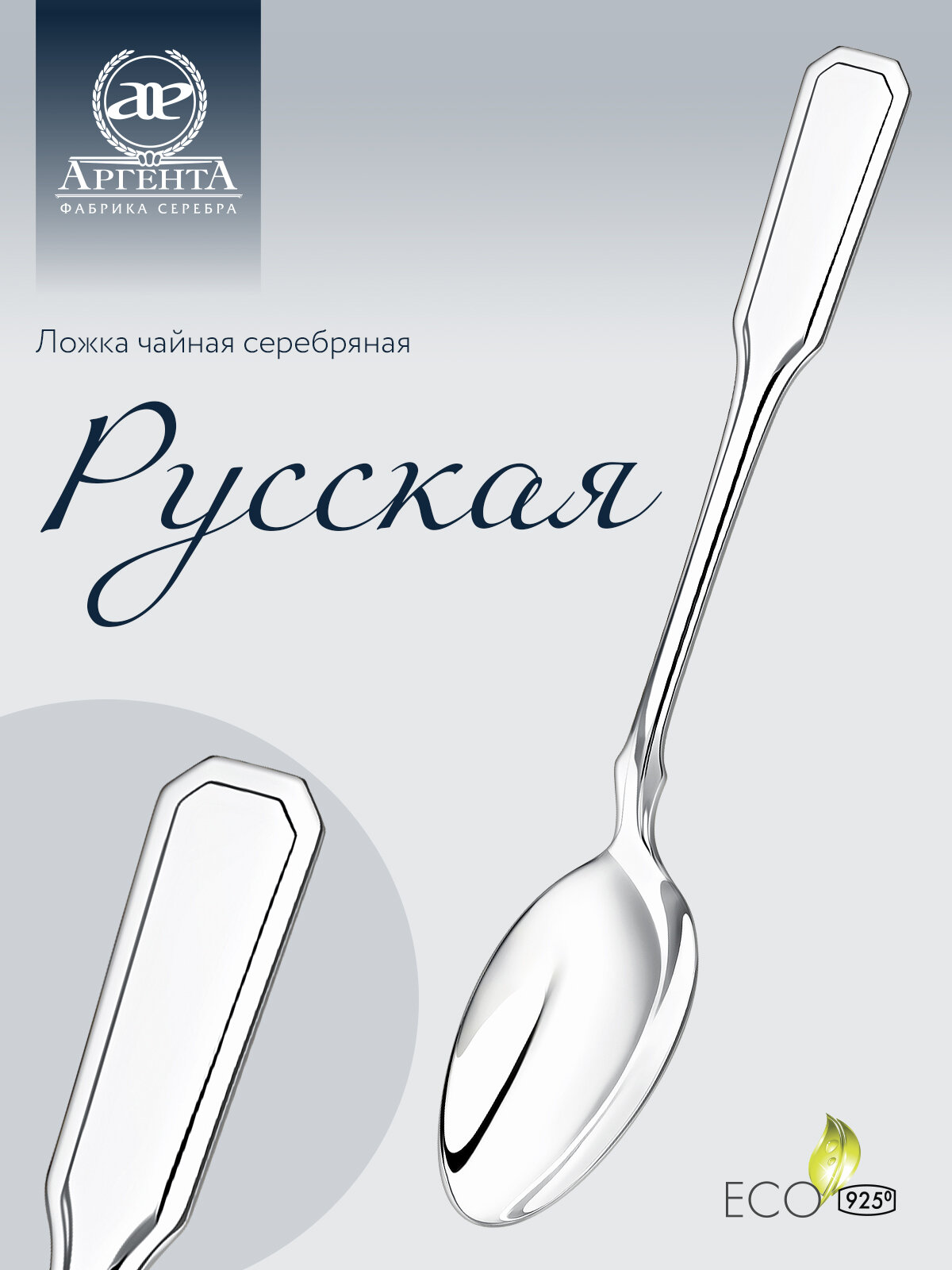 Серебряная чайная ложка с логотипом "Е" с позолотой от бренда "Аргента"
