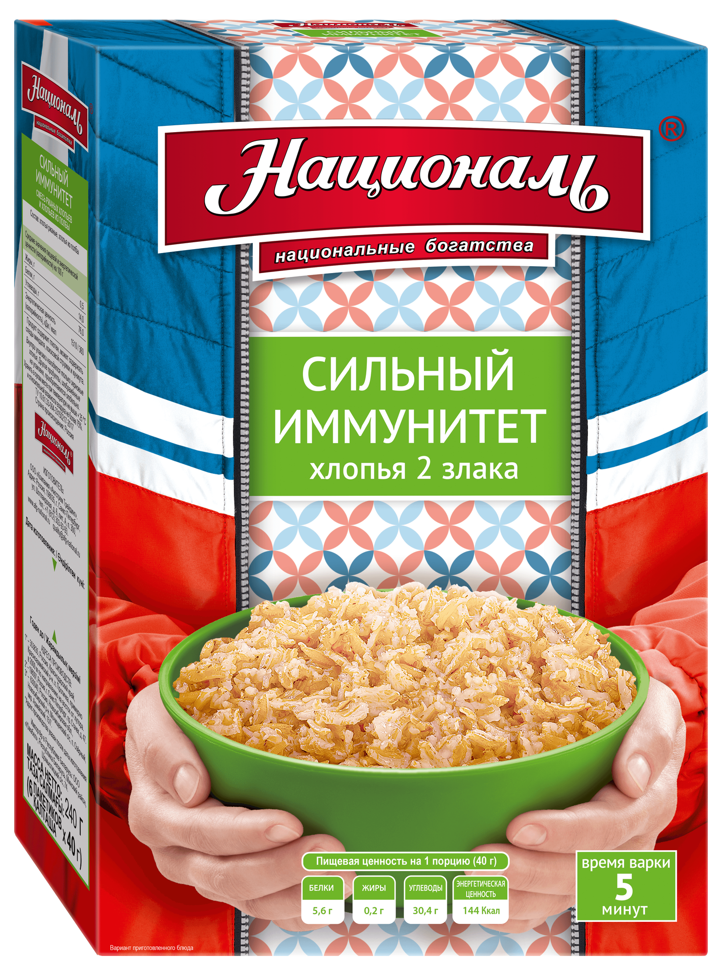 Смесь хлопьев и злаков Националь «Сильный иммунитет» (хлопья ржаные, хлопья из полбы) 6 порций, 240 г информация: