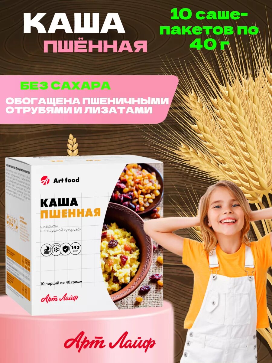 Артлайф Каша пшенная с изюмом и воздушной кукурузой, 10 пакетиков по 40 гр. Арт лайф / Artlife