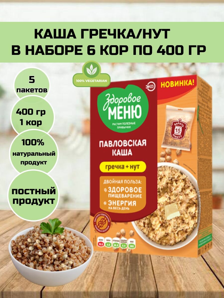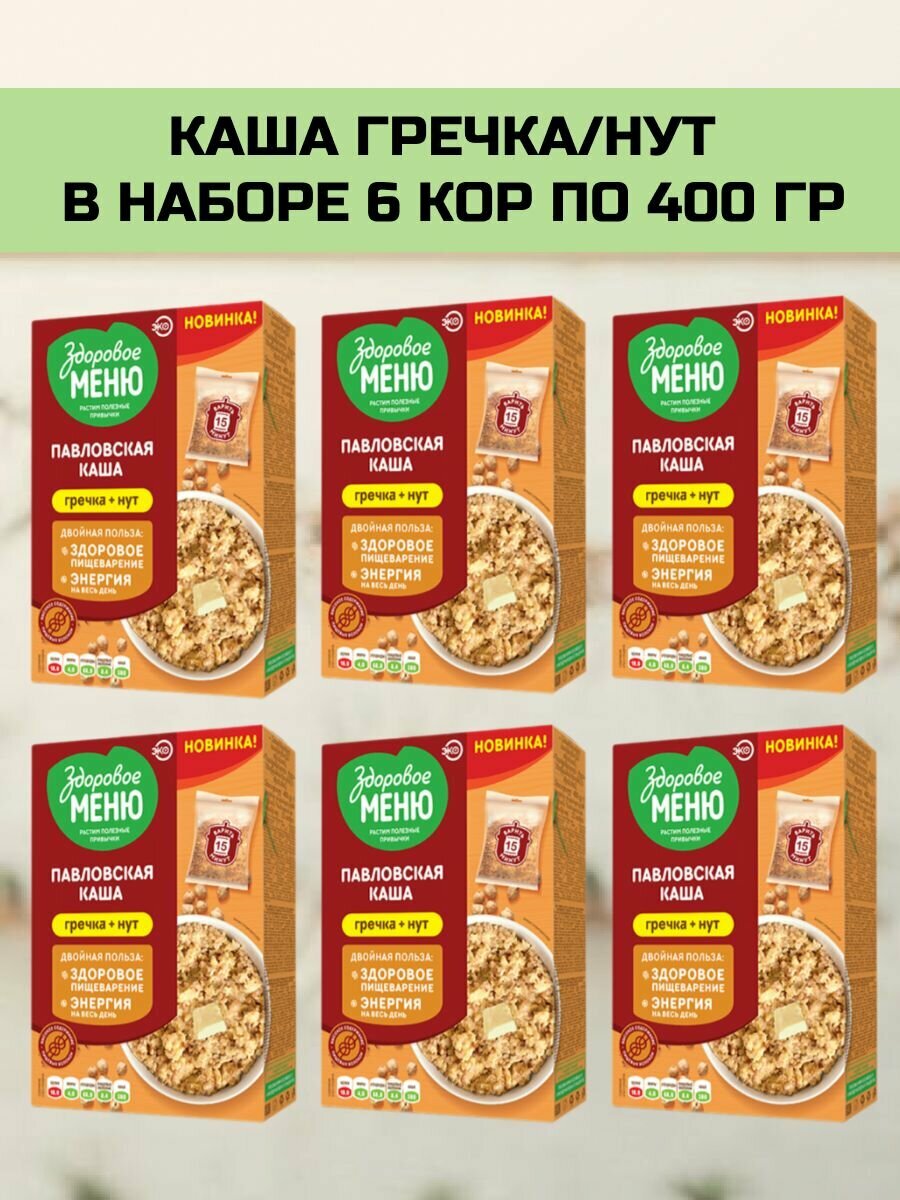 Павловская каша Здоровое меню гречка с нутом 6 коробок по 400 грамм информация: