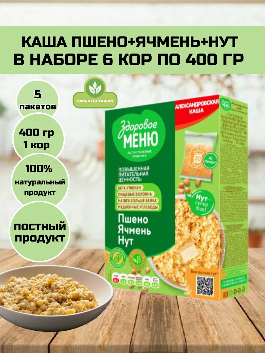 Александровская каша Здоровое меню пшено ячмень нут 6 коробок по 400 грамм информация: