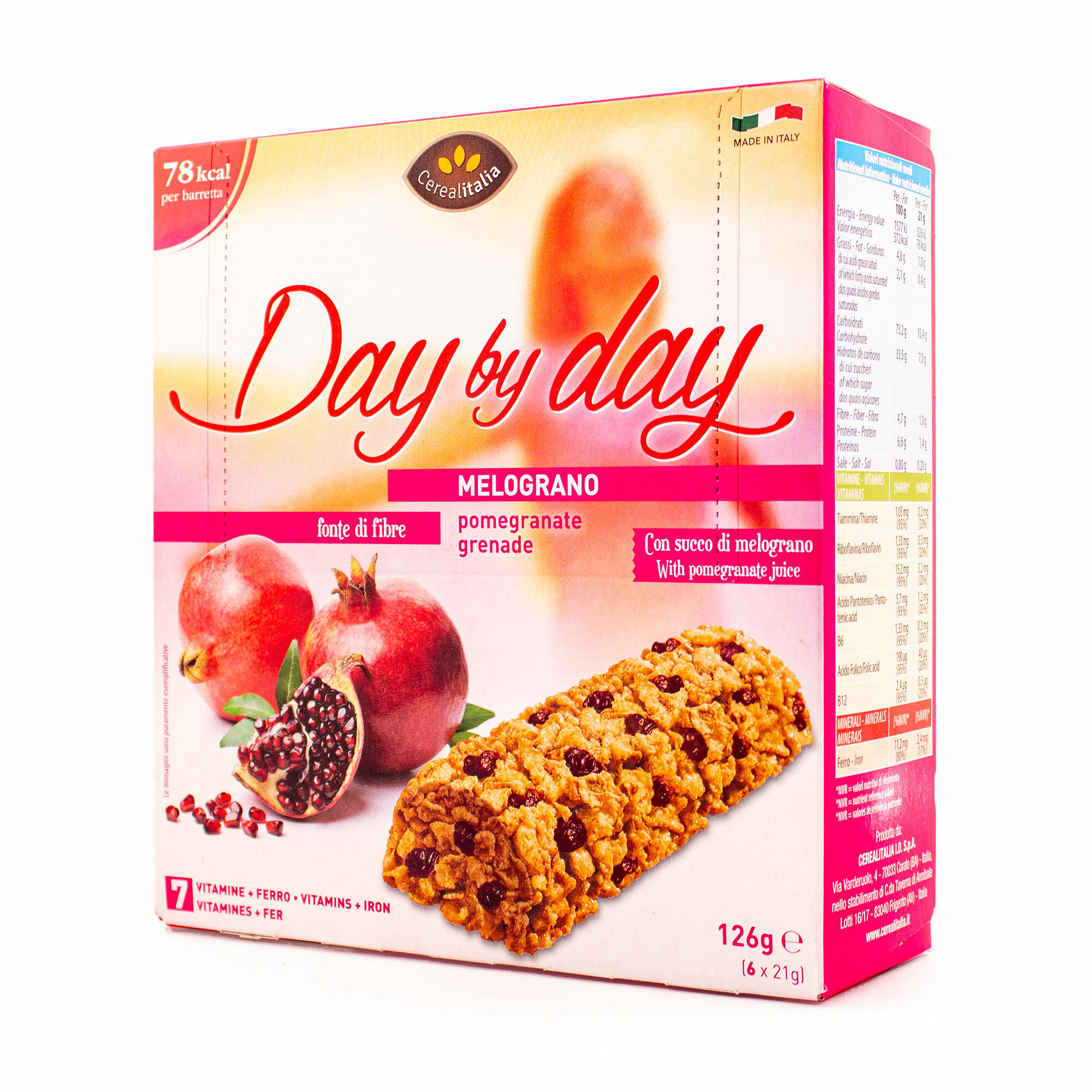 Батончик с гранатом обогащенный витаминами и минералами DAY BY DAY, CEREALITALIA, 0,126 кг (карт/кор)