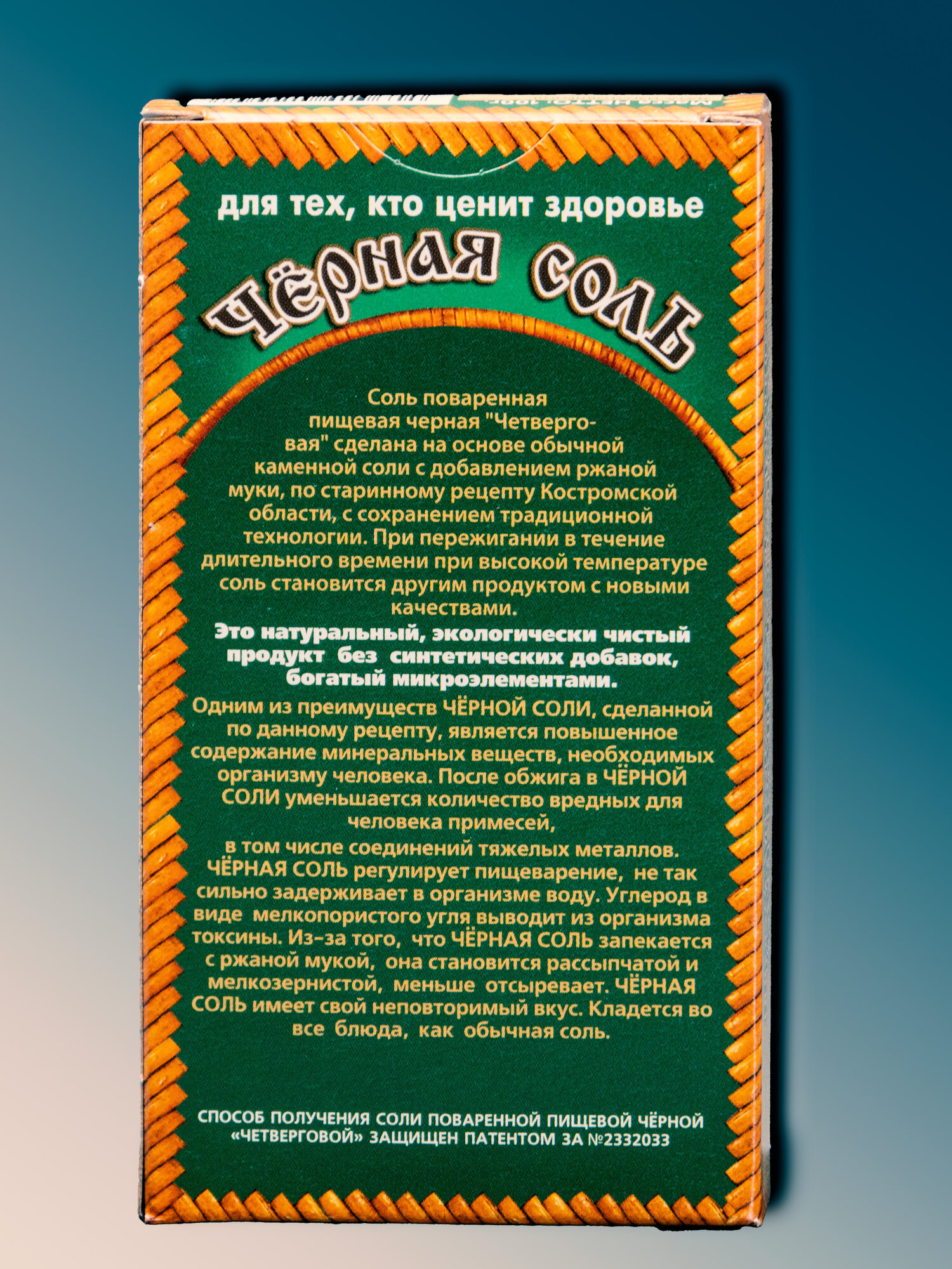 Черная соль четверговая салатная 100 г 1 пачка информация: