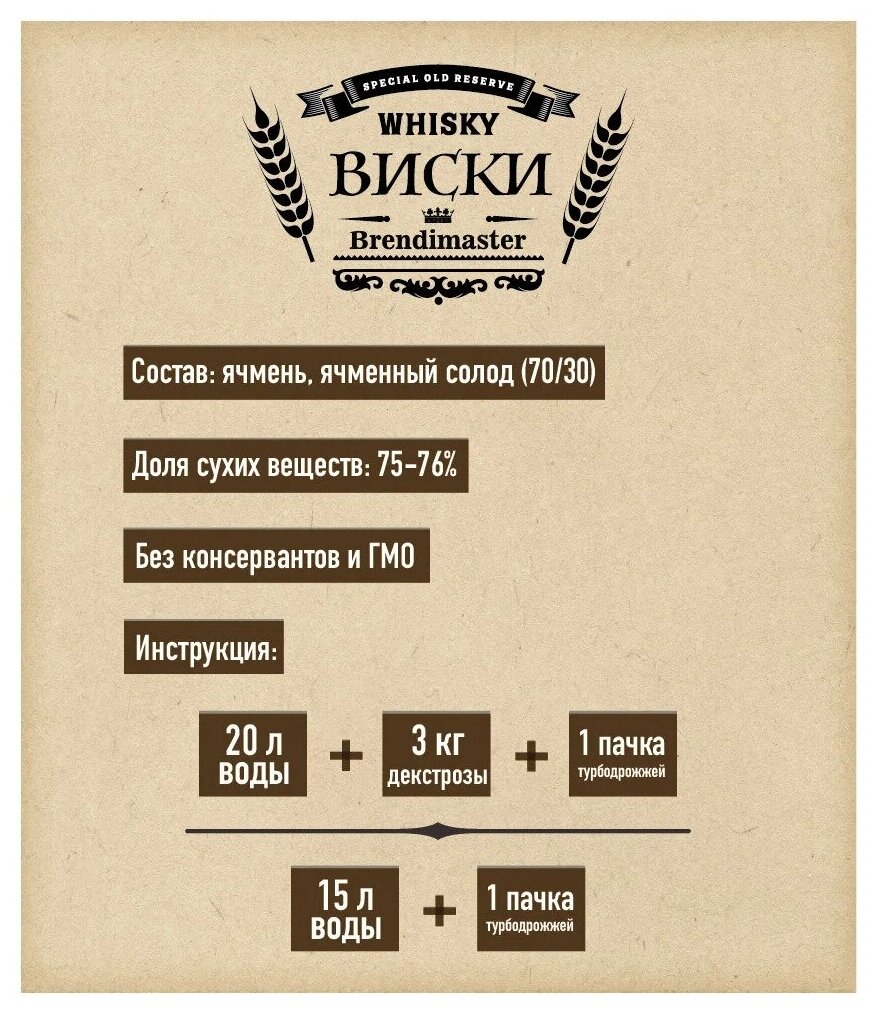 Солодовый концентрат Brendimaster "Виски", 4 кг + дрожжи + декстроза. Комплект.