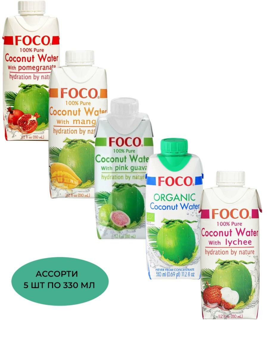 10 цен на Кокосовая вода ассорти "FOCO" ,( в наборе 5 шт по 330 мл )тетра-пак