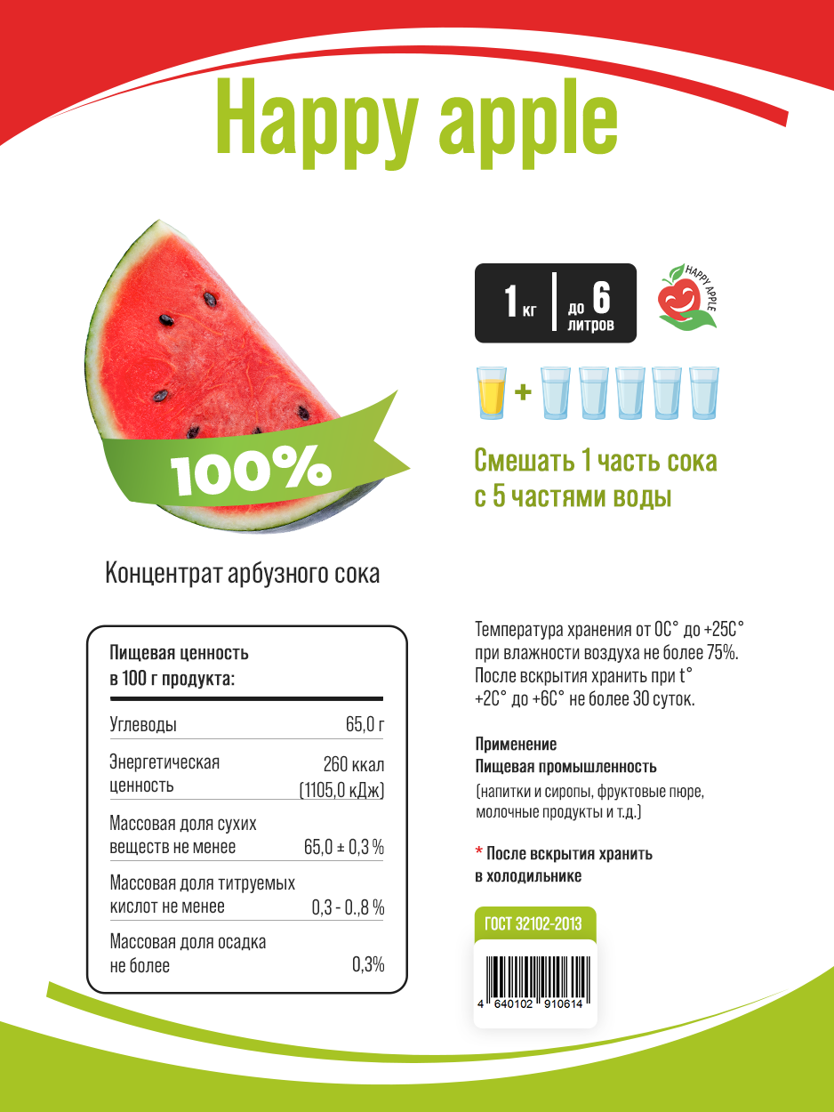Сок концентрированный Арбуз 1 кг, кисл. 0,8% (Happy Apple) информация: