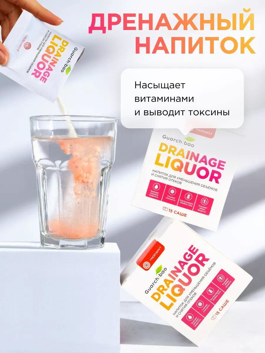 10 цен на Дренажный напиток Guarchibao Drainage Liquor со вкусом Грейпфрута для снятия отеков и уменьшения объемов, для похудения, 2 упаковки (30 саше)