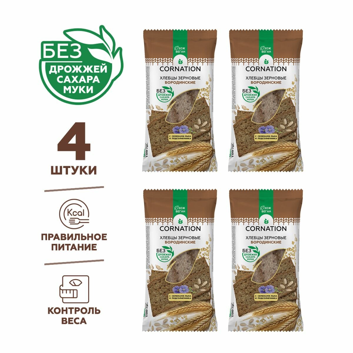 10 цен на Хлебцы без сахара, ржаные Бородинские зерновые CORNATION, 4 шт. по 100 г.