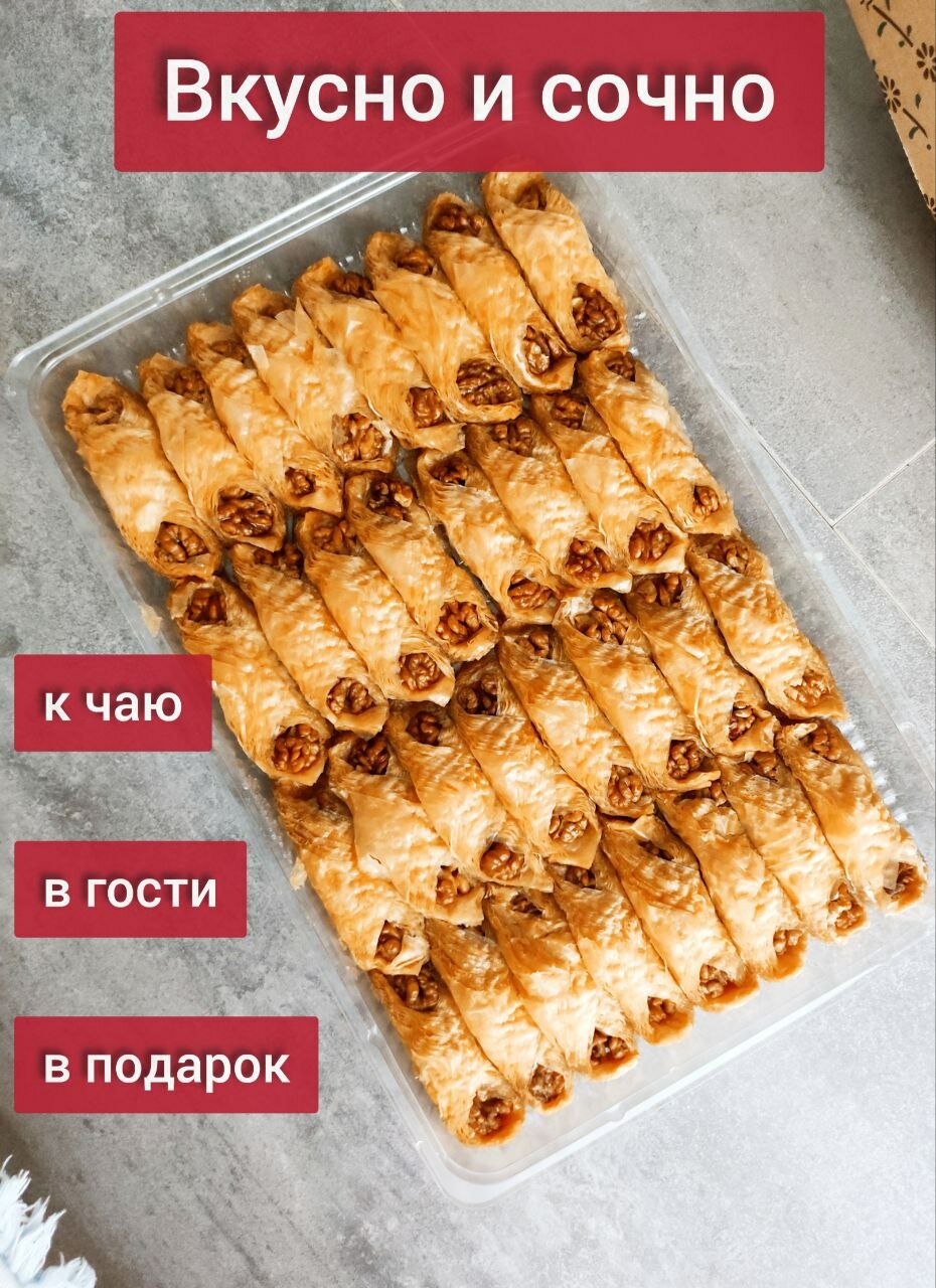 Пахлава "Пальчики" с грецким орехом / Восточные сладости / Полезный десерт / Ореховое лакомство / Подарок