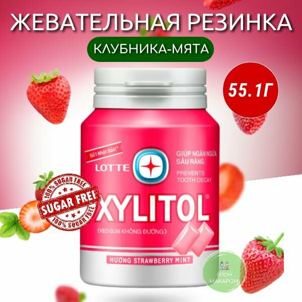 10 цен на Жевательная резинка без сахара XYLITOL клубника мята Lotte 55,1гр