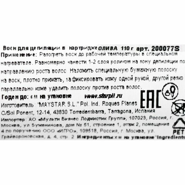Воск для депиляции STARPIL оливковый/aceite de oliva 110 г информация: