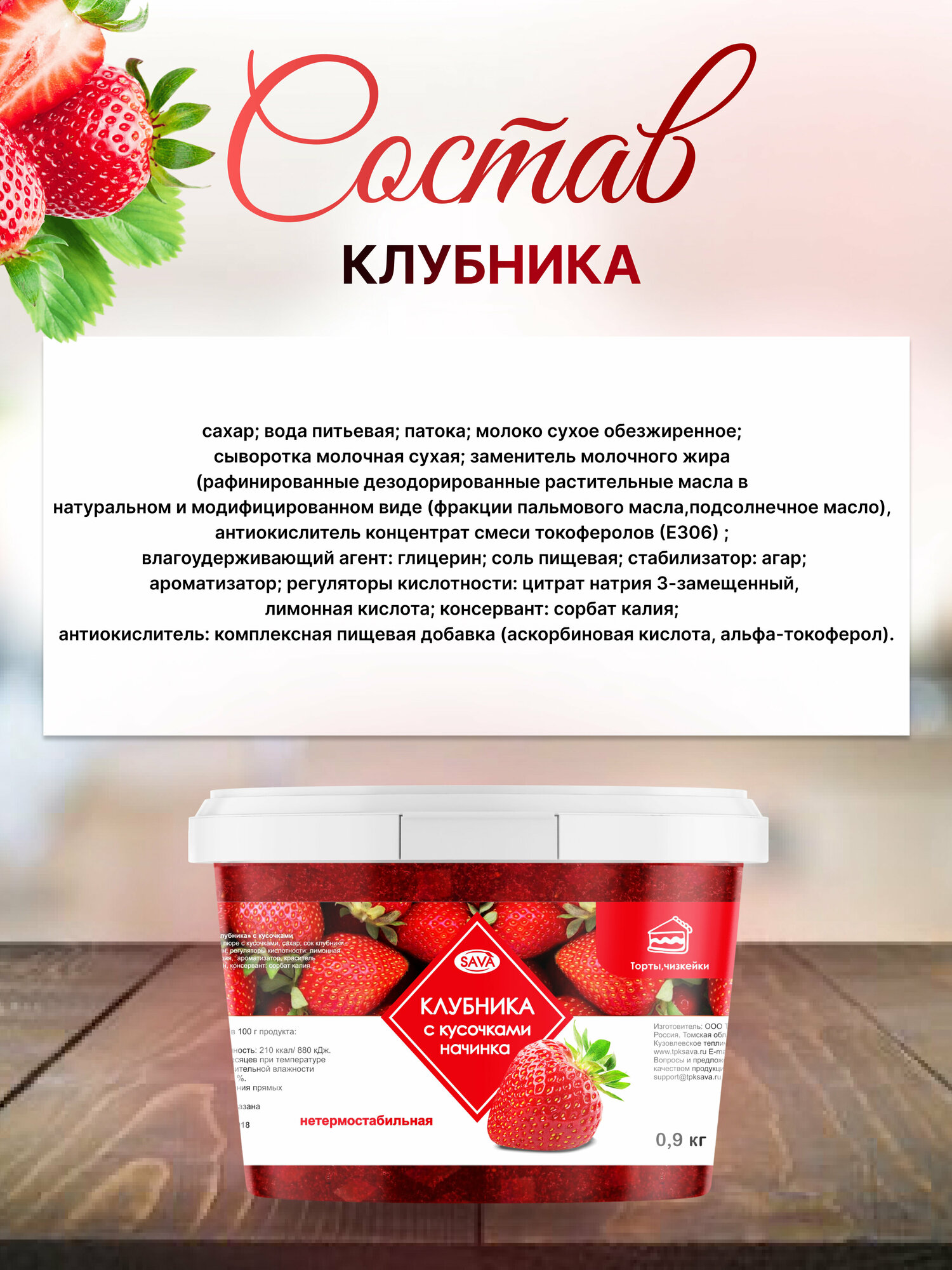 Начинка Клубника с кусочками нетермостабильная информация: