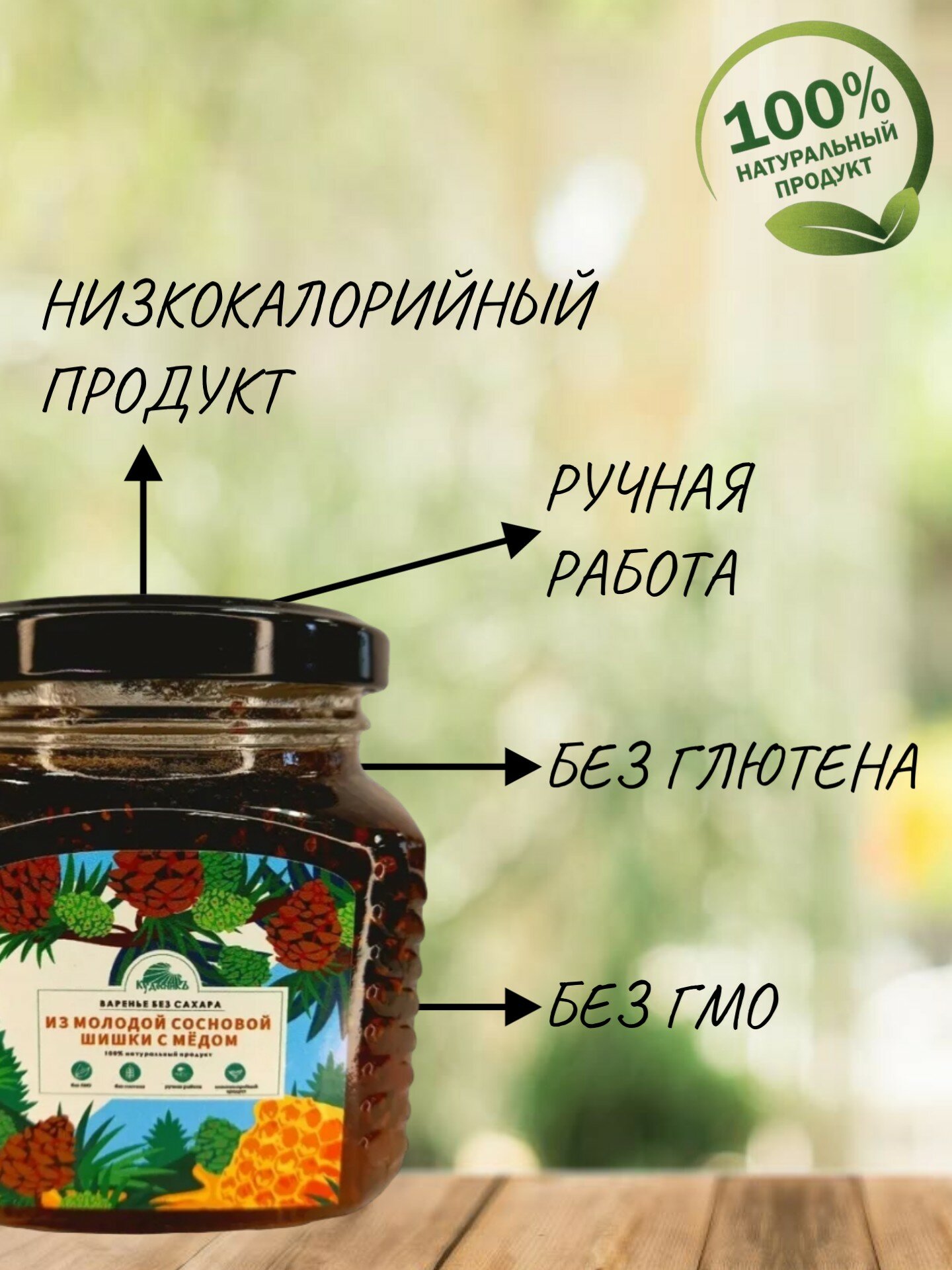 Варенье без сахара Из молодой сосновой шишки с медом, Кудесникъ, 2 шт по 300 г информация: