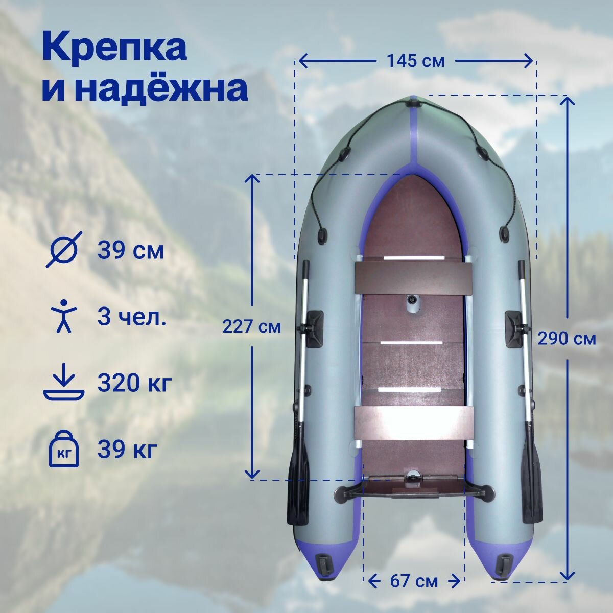 Лодка надувная для рыбалки ПВХ под мотор Муссон 2900 СК с жёстким полом и килем, серо-синяя информация: