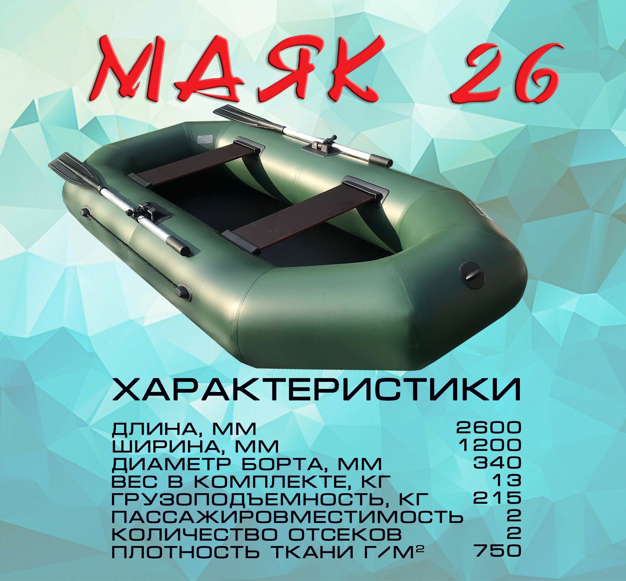 Надувная гребная лодка ПВХ МАЯК-26 (260 см) двухместная информация: