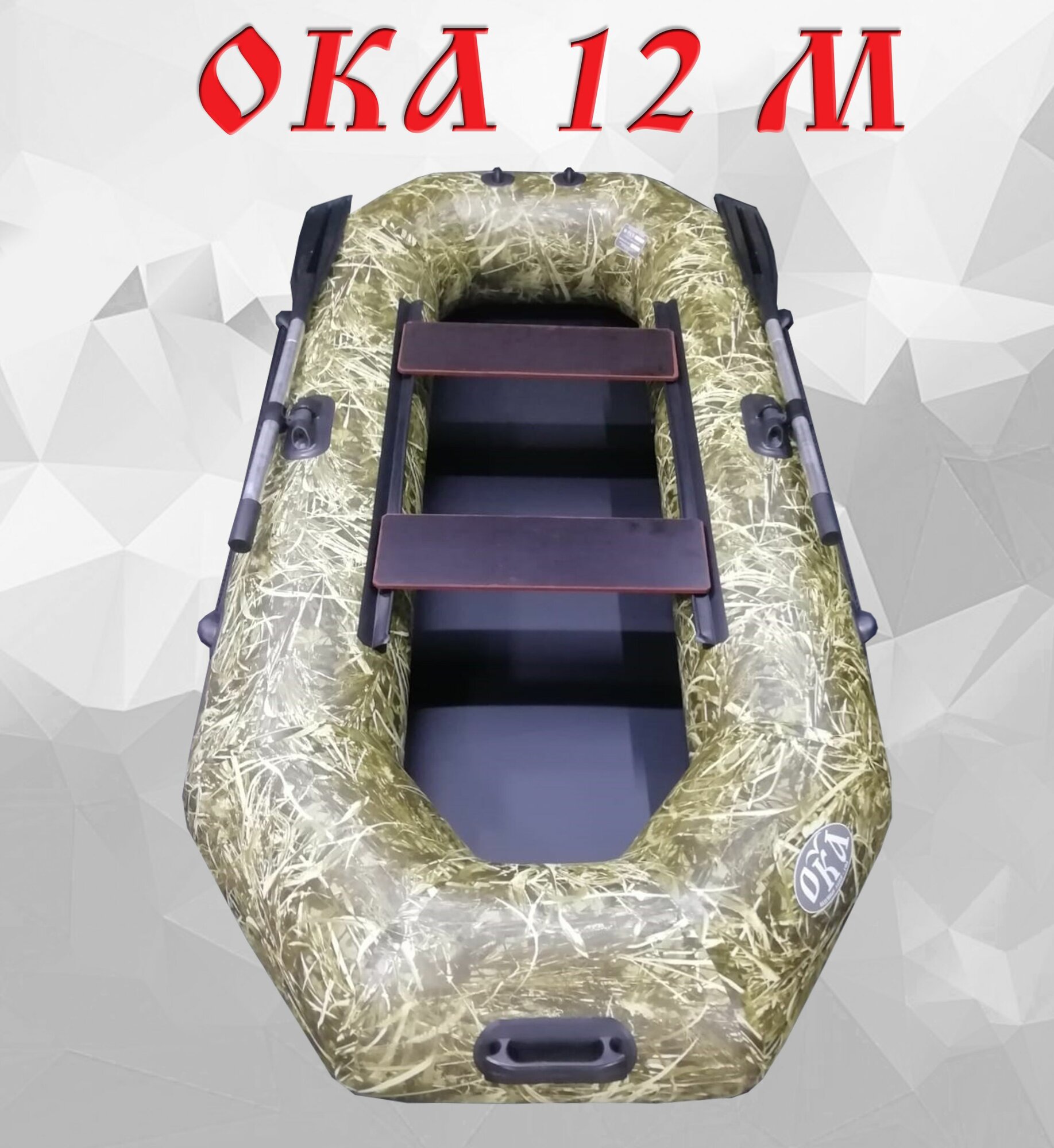 Надувная лодка пвх Ока 12м (240 см) гребная под мотор, цвет камуфляж камыш, двухместная информация: