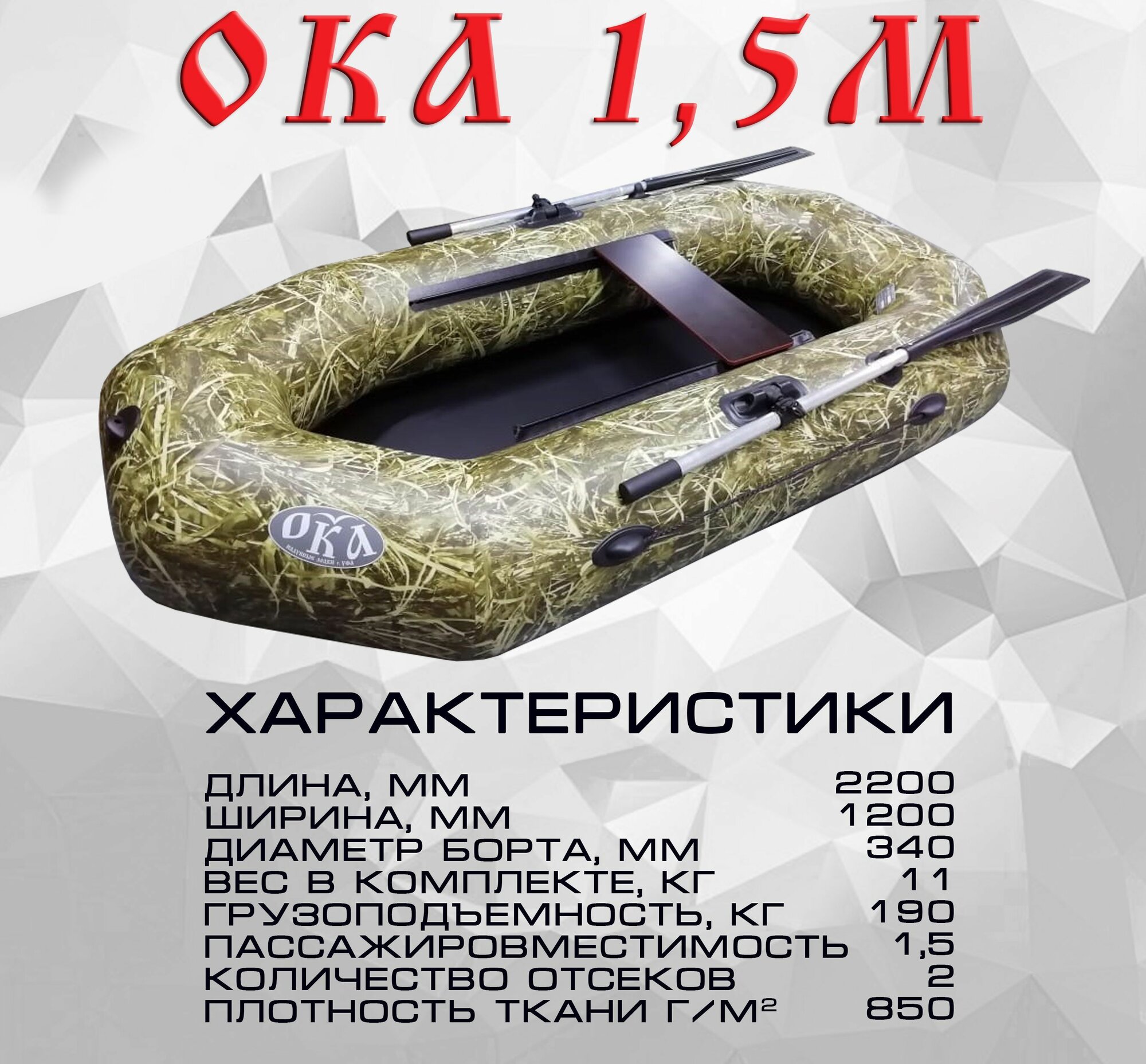 Отзывы на Надувная лодка пвх Ока 1.5м (220 см) гребная, цвет камуфляж камыш, одноместная