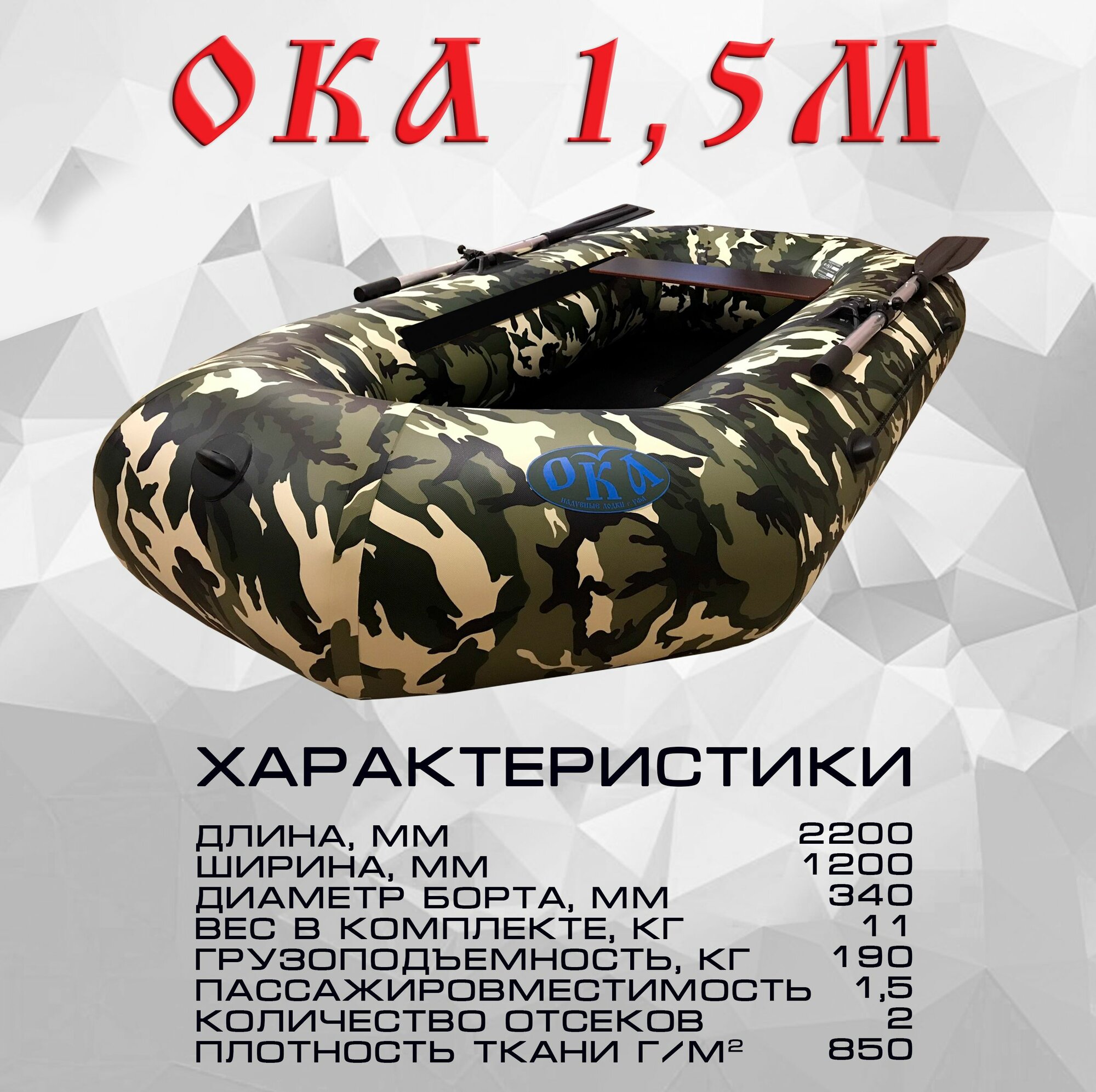 Надувная лодка пвх Ока 1.5м (220 см) гребная, цвет камуфляж мультикам, одноместная информация: