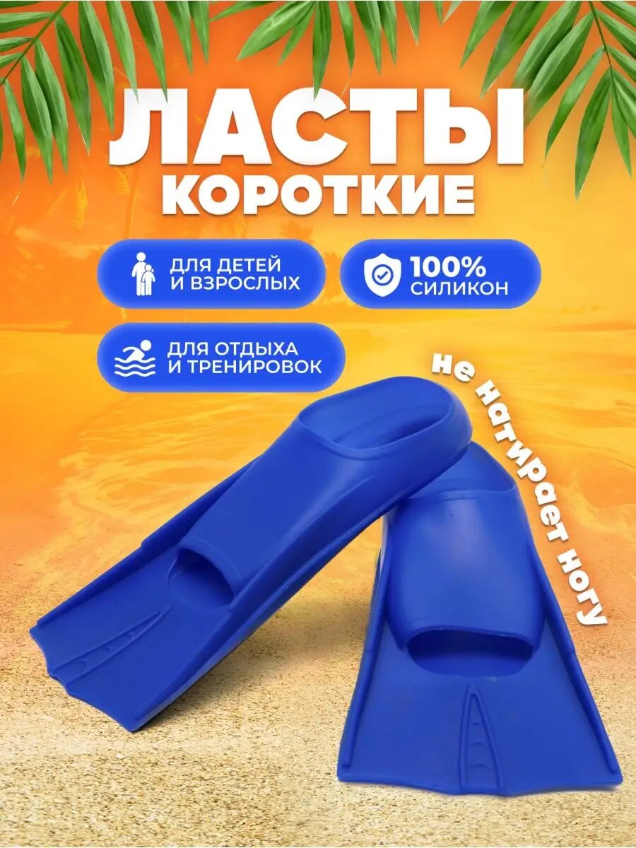 Ласты укороченные, силиконовые, размер S (33-35), синий цвет