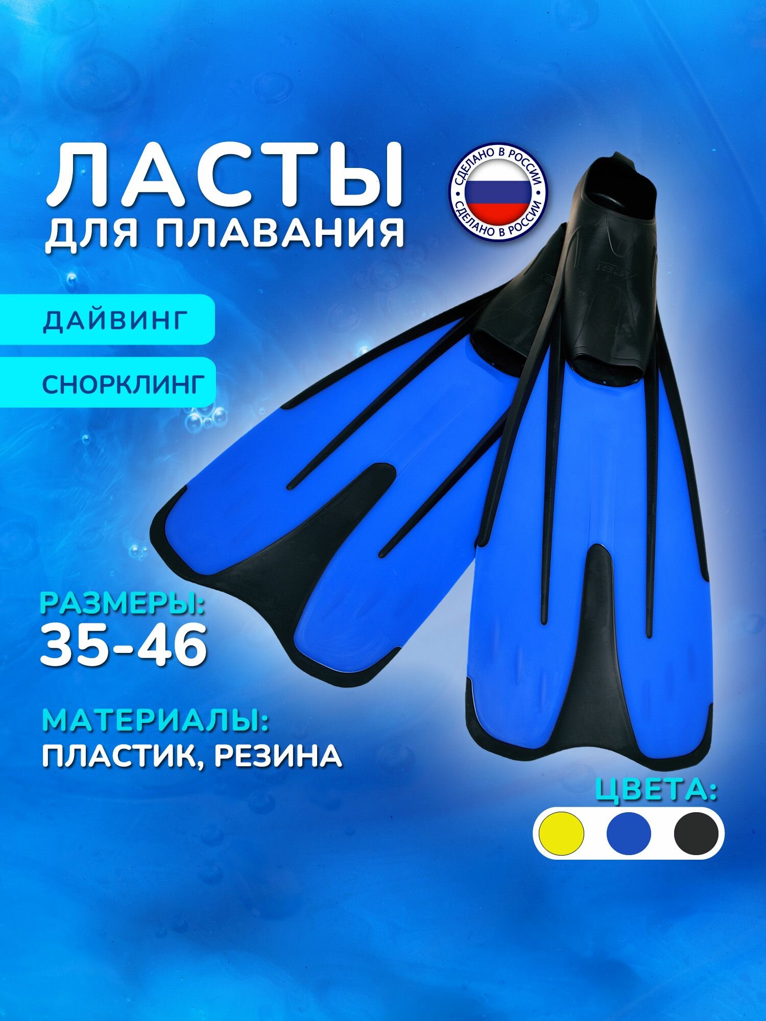 | Дополнительная информация | материал пятки – мягкая терморезина; тип носка: открытый; жесткость лопасти: средняя |