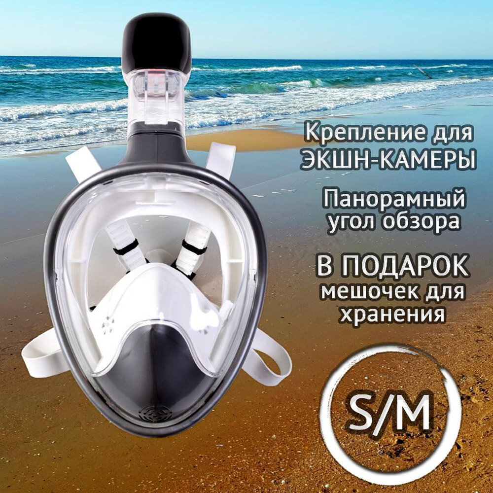 10 цен на Подводная маска для плавания полнолицевая, размер S, серый/белый
