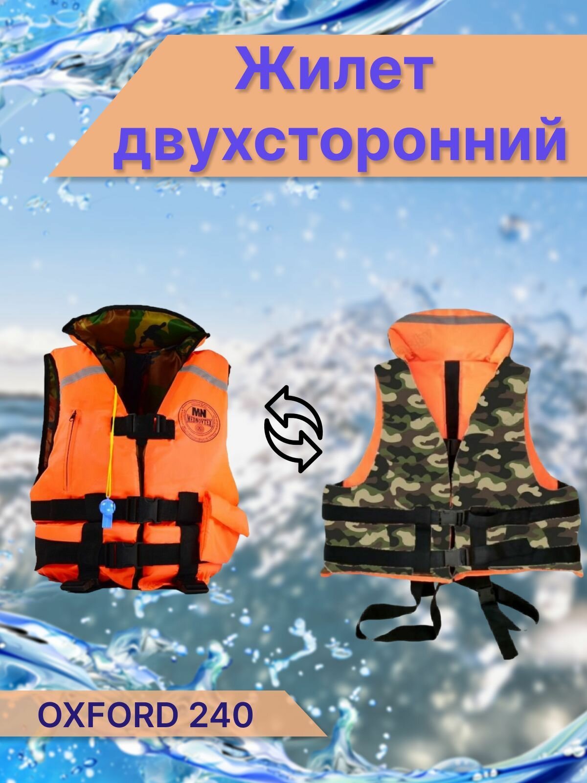 Жилет спасательный для взрослых, до 70 кг, двусторонний информация: