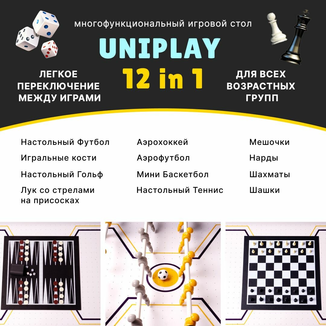 Игровой стол трансформер 12 в 1 "UniPlay". Настольный футбол. Аэрохоккей. Мини Баскетбол. информация: