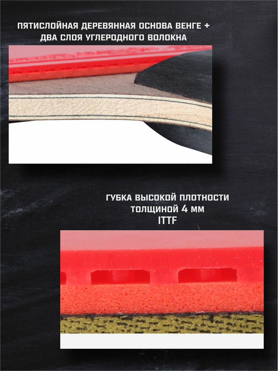 Ракетка для настольного тенниса 3* для атакующей игры, коническая рукоять