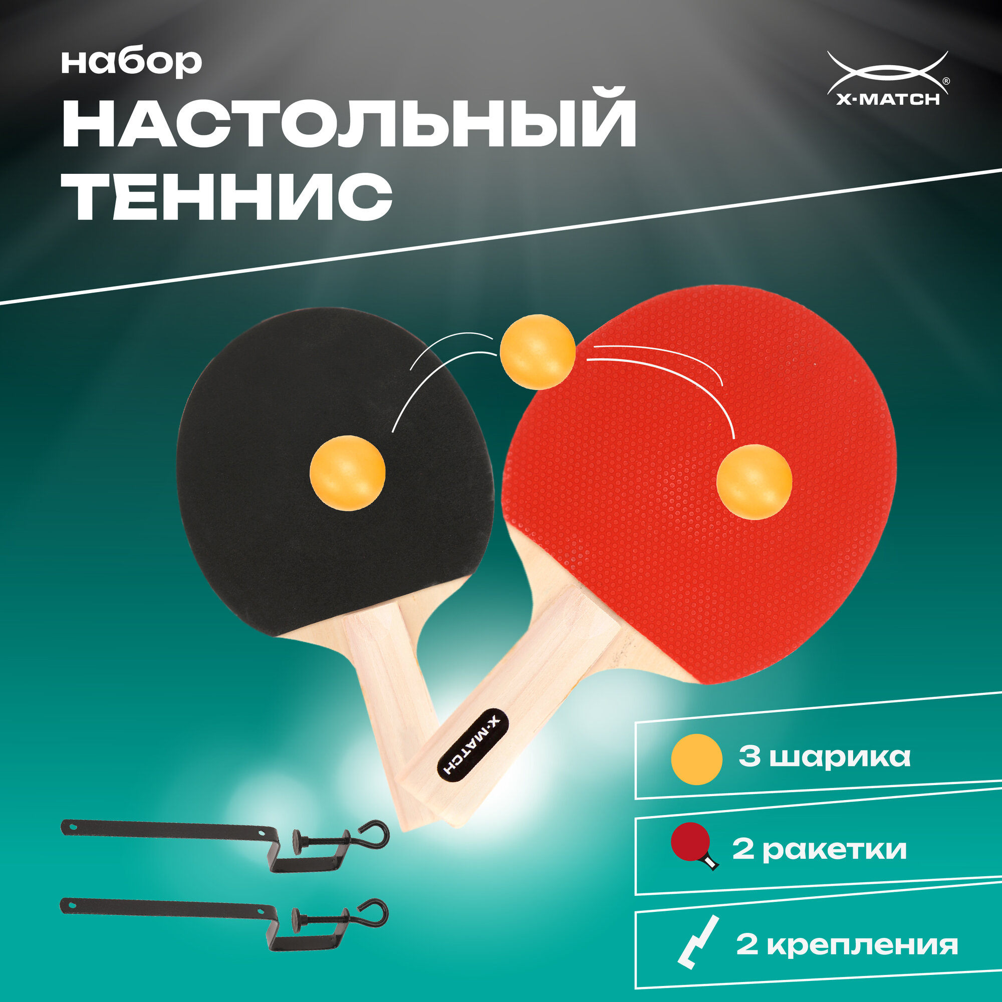 Набор для настольного тенниса X-Match, 2 ракетки + 3 шарика + крепления, дерево, 25см 506 ₽
