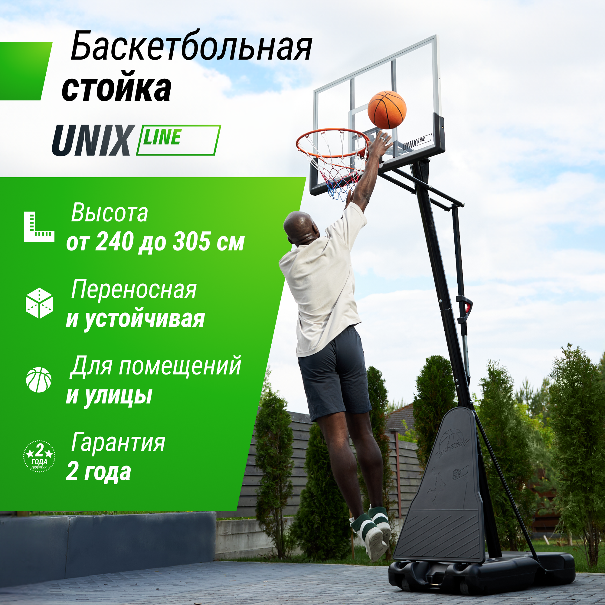 10 цен на Баскетбольная стойка UNIX Line B-Stand-PC с регулировкой высоты 240-305 см, щит 122х81 см (49"x 33"), диаметр кольца R45