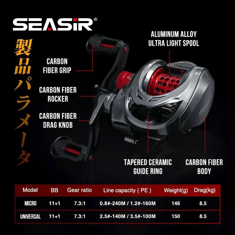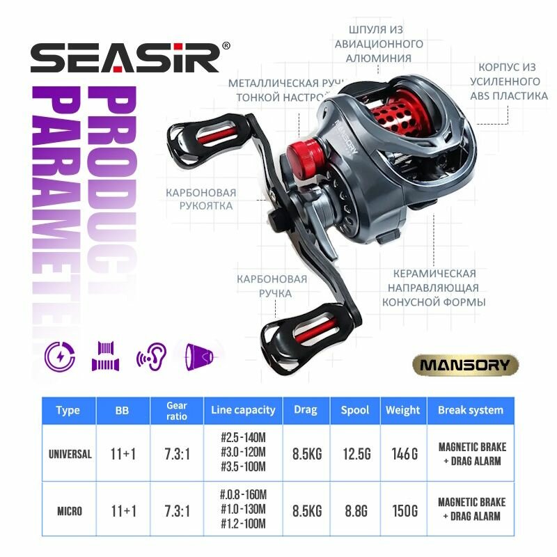 10 цен на Мультипликаторная катушка SEASIR Mansory низкопрофильная, 7.3:1, 11+1bb, 2 шпули, под левую руку