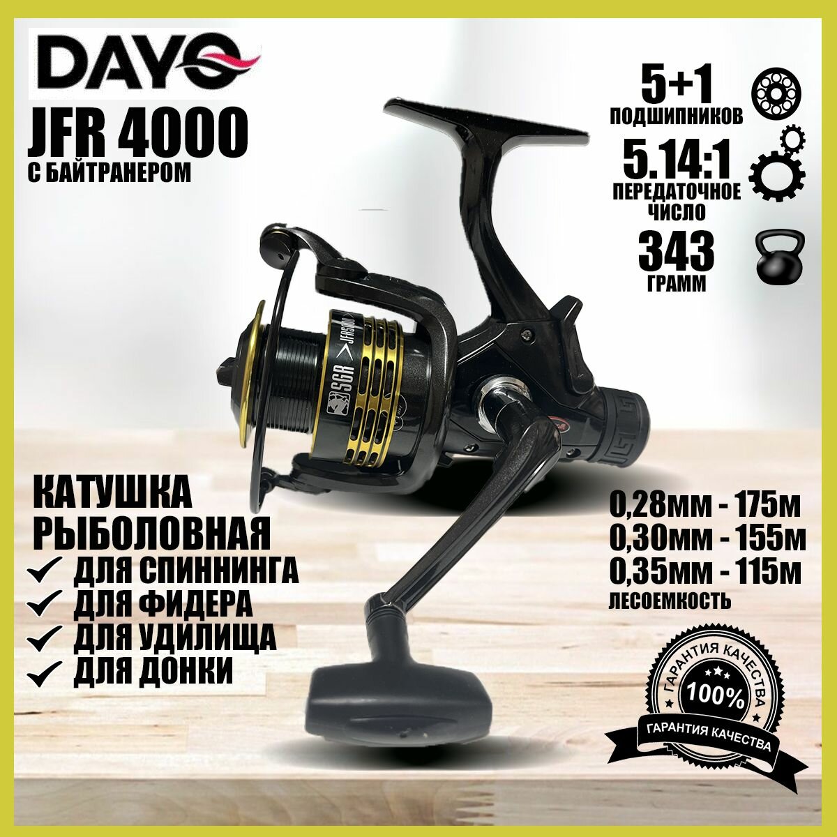 Катушка для спиннинга рыболовная / катушка для рыбалки 4000 DAYO JFR безынерционная с байтранером информация: