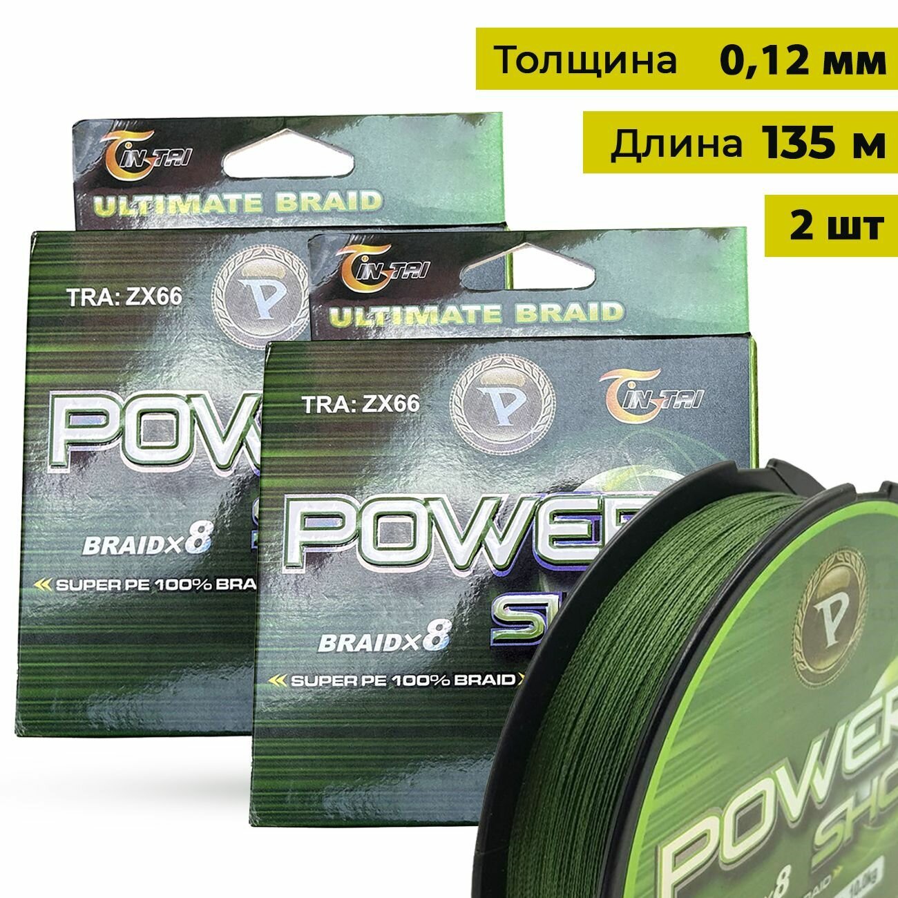 10 цен на Шнур 8 жильный PE для рыбалки 0.12 мм 18.8 кг 135 м зеленый 2 шт